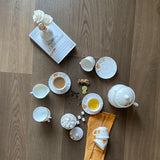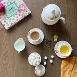Bring convenience to your dinner table with this classic dinner set that comprises of seventy one separate pieces for unmatched convenience. It has been crafted from fine-quality material for extended durability to add a refined touch to your dining experience. Pack Content : 8 Dinner Plates, 8 Side Plates, 8 Katori, 8 Soup Bowls with spoons, 2 Serving Bowls, 2 Serving Oval Platters, 8 Tea Cups with saucer, 1 Sugar Pot, 1 Mik Pot, 2 Salt & Pepper Shaker, 2 Casseroles and 1 Tea Pot with handle.