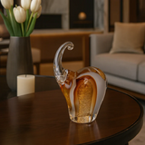 This is a hand-blown Crystal elephant figurine crafted in clear crystal with black and golden accents. The sparkling gold detail inside adds a touch of luxury, while the raised trunk represents good fortune, prosperity, and strength. A refined décor piece that blends artistry with symbolism, making it ideal for both gifting and home display.