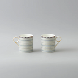 Sip your favorite beverages in style with this beautifully crafted porcelain mug set. Designed with a sophisticated geometric pattern in soft blue and ivory tones, each mug is accentuated with a striking golden rim and handle for an added touch of elegance.