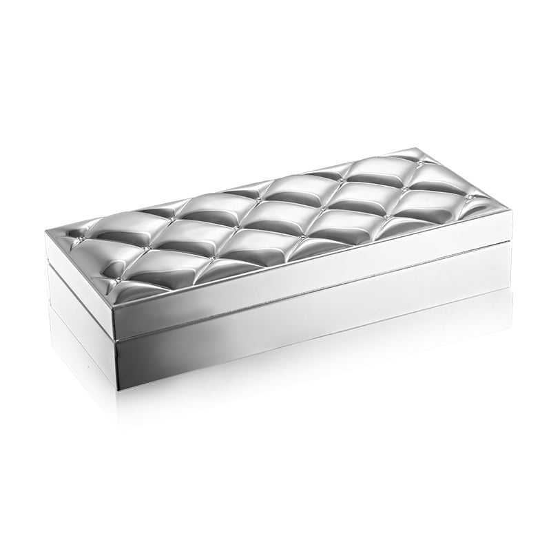 This ornately crafted box in a beautiful metallic finish, features a delicately patterned lid, and reflects the romantic and thoughtful you. Perfect for any occasion, use it to add a touch of sparkle. Avaiable in 3 colours as well.