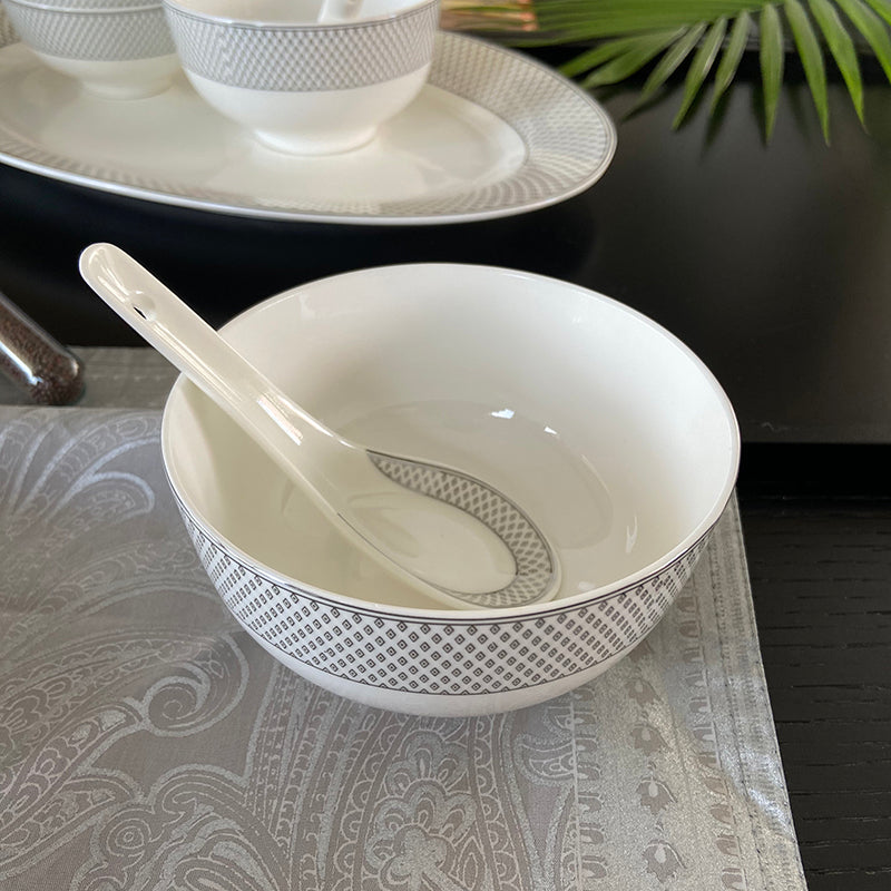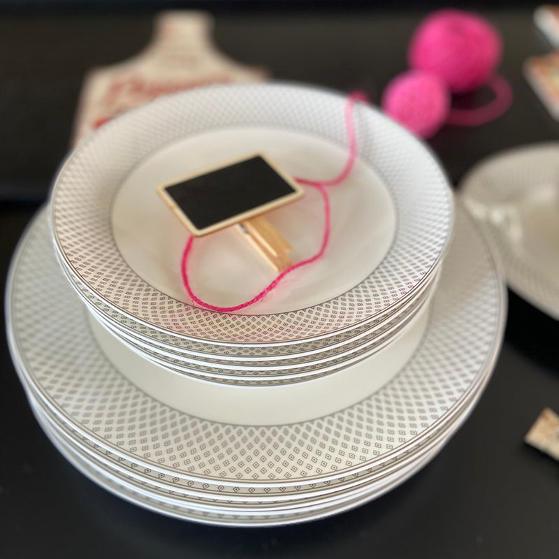 This dinner set is made of white gold which gives a very chic and premium look . It comes with nature-inspired designs to add a lot of style and elegance to the dining table. It is the perfect combination for dining and ideal for daily use as well.