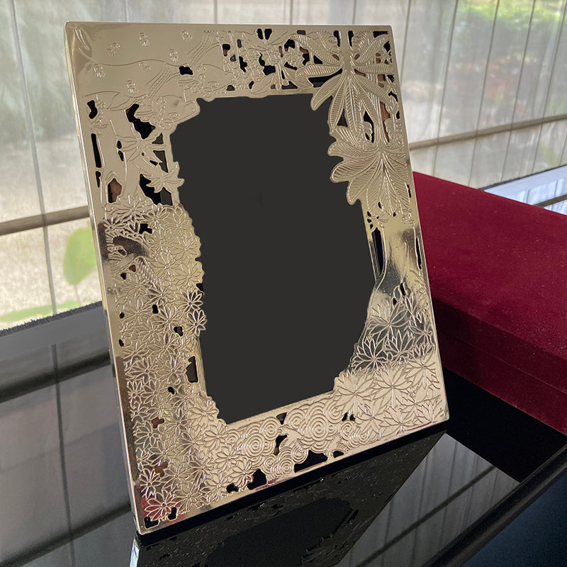 Add a touch of regal elegance to your memories and home with this beautiful oxidised silver photo frame. This is the perfect gift to add to your wedding or any festive invitations as well. It comes with a beautiful red velvet box packaging.