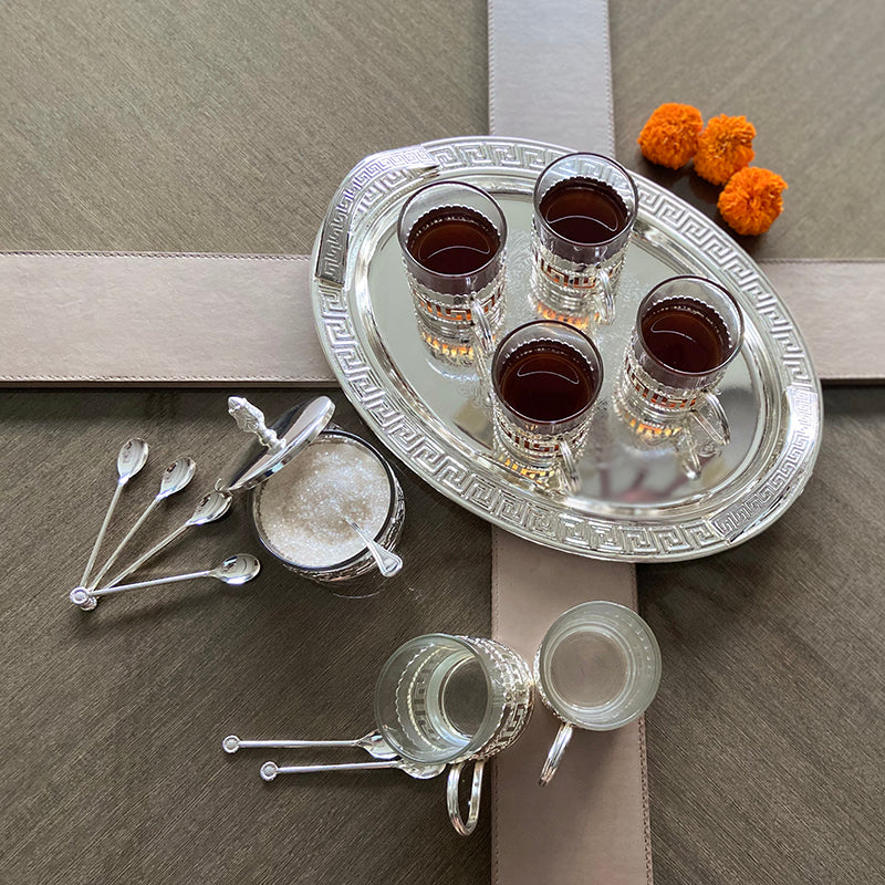 A stunning set crafted to perfection in silver and glass, it can be added to any setting on any occasion to add an instant sense of grandeur and beauty.