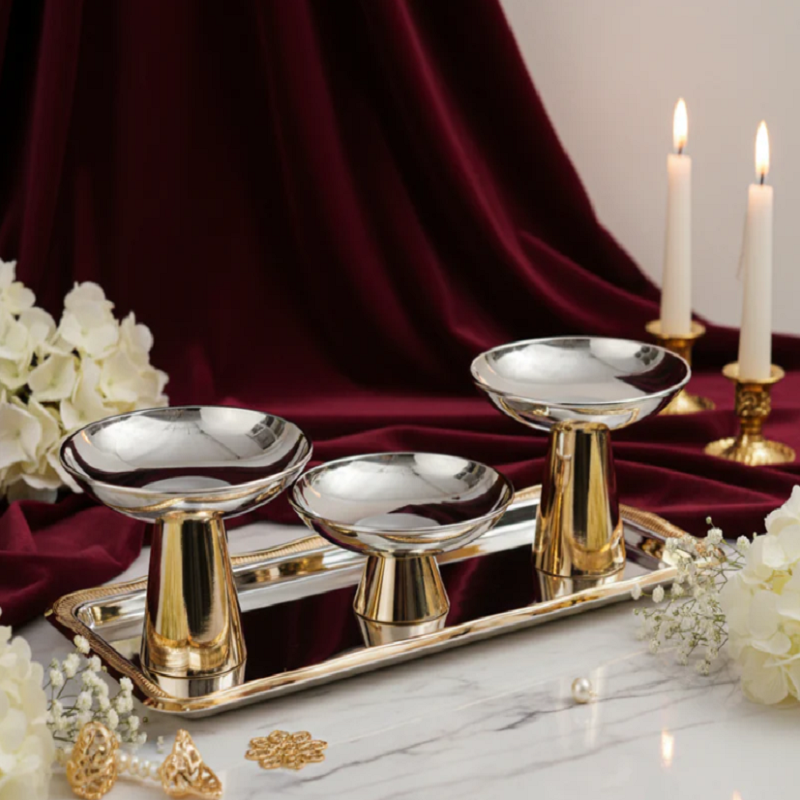 These spectacularly crafted set of servers are the perfect way to offer your guests an assortment of edible delights. Featuring an elevated gold pedestal with a bowl on top in a silver finish, this unique design is sure to delight.