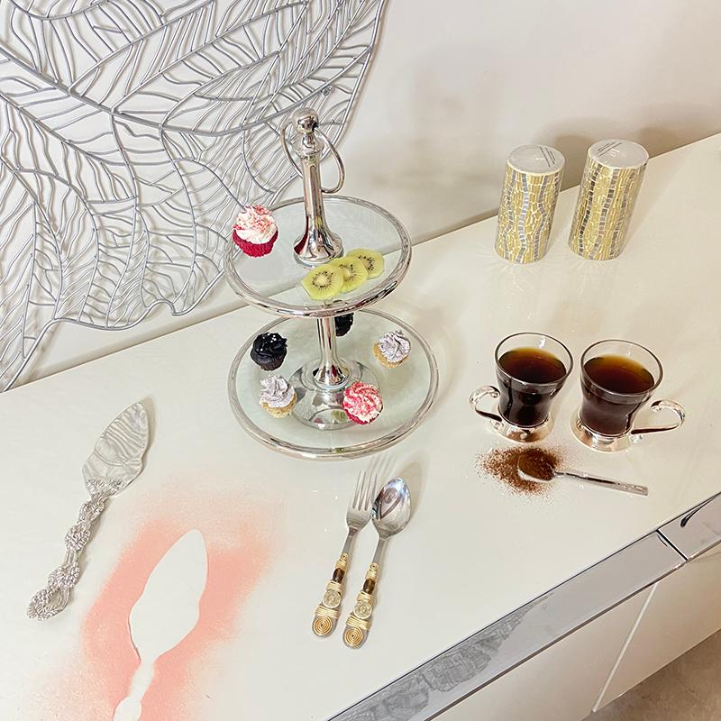 Your guests will be impressed with the extensive spread of desserts on your 2 tiered metal cake stand. It is sure to command attention for its fine craftsmanship.